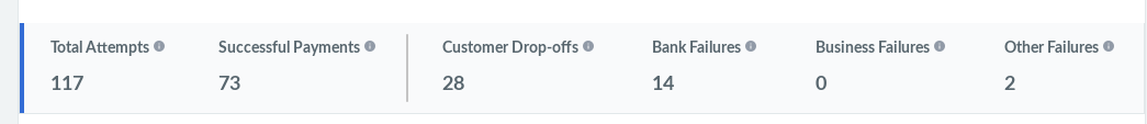 1. Most of the failures happen between initiation and authorisation..due to OTP issues , filling of incorrect card details.